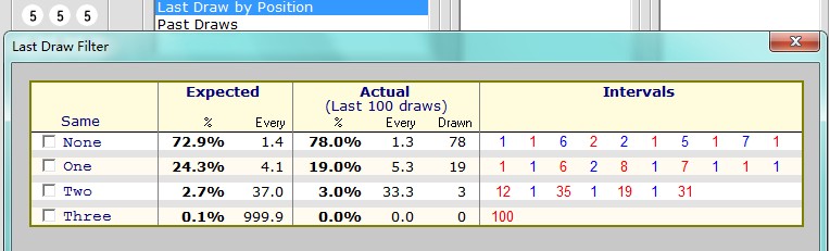 最近100期“ 开奖号码过滤"